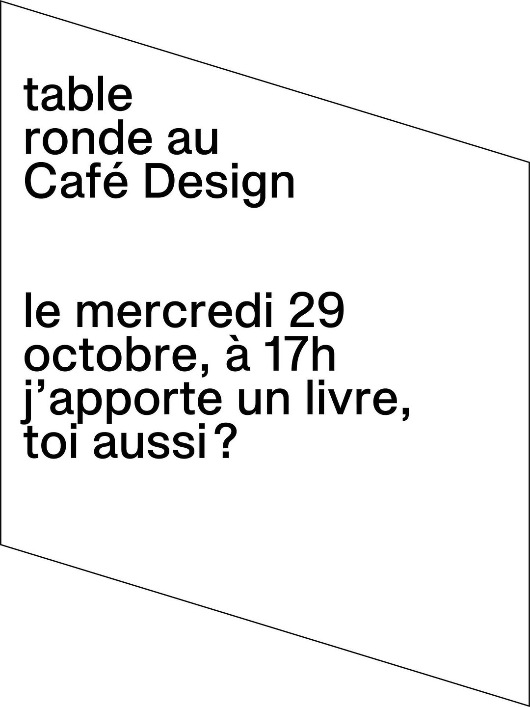 En gros, apportez un livre que vous avez conçu et/ou que vous trouvez pertinent/joli; ce sera l’occasion de discuter et d’échanger autour de vos ouvrages respectifs.